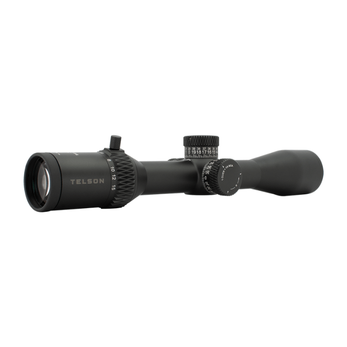 Razorback knurling. +Excellent eye relief and Eye box w/ side Parallax focus adjustable to 10 yards.